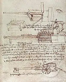 توضیحات داوینچی میان برگههای او گم شده بود تا آنکه اتین-ژین دلکیوز از بنیاد فرانسه آن را در سال ۱۸۳۸ دوباره کشف کرده و در سال ۱۸۴۱، خیلی پیش از آن که موتورهای بخار فشار قوی اختراع شوند، در مجلهٔ له آرتیست به چاپ رساند.[1][4][5][6]