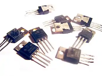 تنظیمکننده ولتاژ، مدار یا قطعهای الکترونیکی است که ولتاژ را بر روی مقدار مشخصی تثبیت میکند. معمولا آیسیهای رگولاتور یک قطعه سه پایه است.