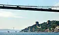The قلعه روملی حصار on the Bosphorus, with both پل معلقs which span the strait.
