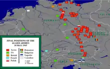 نقشه عملیات نهایی متفقین غربی بین ۱۹ آوریل و ۷ می ۱۹۴۵ و تغییرات در خط مقدم شوروی