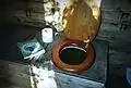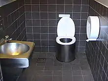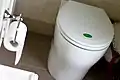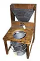 یک توالت خشک که فضولات در آن جدا میشوند و در زیر زمین دستشویی انبار میشوند تا به کود تبدیل شوند.