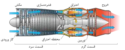 مراحل کاری موتور جت مبتنی بر توربین گاز به ترتیب زیر هستند: