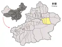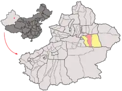 ![]() تورفان 吐鲁番 Location of the district centre in Xinjiang | |