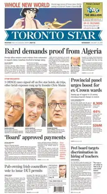 ![]() ۲۳ ژانویه ۲۰۱۳, صفحه اول تورنتو استار | |