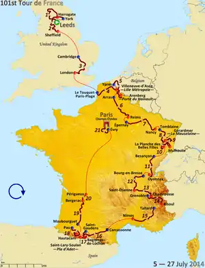 - "2014 Route". Tour de France. A S O. Archived from the original on 6 July 2014. Retrieved 3 July 2014.