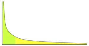 از نظر ریاضیاتی، یک توزیع توانی محض نمیتواند یک توزیع احتمال باشد، ولی یک توزیع که تابع توان کوتاه شدهاست، ممکن است: برای که در آن نمای (حرف یونانی آلفا و نه فاکتور مقیاس دهی که در بالا استفاده شدهاست) از ۱ بزرگتر است (درغیر این صورت دنباله آن مساحت بینهایت دارد)، مقدار حداقل هم نیاز است زیرا در غیر اینصورت موقعی که x به سمت ۰ میل میکند، توزیع مساحت بینهایت دارد، و ثابت C یک فاکتور مقیاس دهی است، که این فاکتور اطمینان حاصل میکند که مساحت کلی برابر ۱ است، این موضوع برای یک توزیع احتمال یک «نیازمندی» است. به صورت عمومی تر میتوان از یک توزیع توانی مجانبی استفاده کرد- یعنی توانی که فقط در حد صحیح است؛ توزیعهای احتمال توانی را در زیر برای جزئیات بیشتر ببینید. معمولا نما در بازه میباشد، اگرچه این موضوع همیشه برقرار نیست.[8]