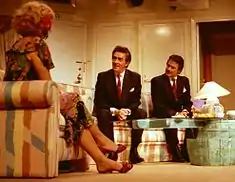 ![]() توماس هلبری (وسط) در کنار استیگ انگستروم (راست) در نمایشنامه زوج عجیب در سالن نمایش ماکسیم در سال ۱۹۸۸ میلادی | |