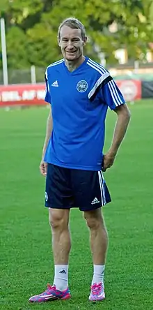 ![]() کالنبرگ در حال تمرین با تیم ملی فوتبال دانمارک | |||
