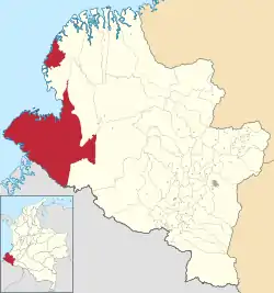 ![]() Location of the city (red) and municipality (dark gray) of Tumaco in the Nariño Department. | |