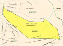 ![]() Tavistock highlighted in Camden County. Inset: Location of Camden County highlighted in the State of New Jersey. | |