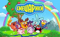 ![]() لوگوی روسی کارتون و شخصیتهای آن. ردیف عقب از چپ: بری، اُلگا، دوکو، چیکو، کراش، کارلین. ردیف جلو از چپ: رُزا، والی، پین. | |