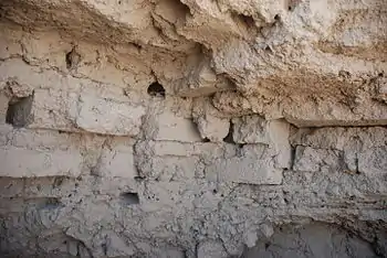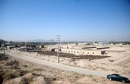 در قسمتهای شمال و شمال غرب محوطه و در نقاط مختلف این قسمتها آثار و بقایای دیوارهای خشتی قابل مشاهده است. کاوش و خاکبرداری غیرمجاز در این قسمت باعث تخریب لایههای باستانی و نمایان شدن آثار معماری شدهاست. در برخی قسمتها خاکبرداری غیرمجاز دیوارهایی را با ارتفاع ۲ متر از زیر خاک بیرون آوردهاست.