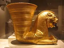 | شیر غران یکی از نمادهای هنرورزی در تزئینات آثار به جا مانده از دوره هخامنشیان است. | |