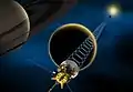 انگاشت هنری از ارسال امواج رادیویی حاوی اطلاعات مربوط به تیتان از کاوشگر کاسینی به زمین.