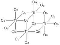 ![]() Abbreviated structure of titanium(IV) ethoxide. The ethoxide لیگاند are represented by O's. The terminal ethoxide ligands are designated by Oa, the doubly bridging ligands by Ob, and the triply bridging ligands by Oc. | |