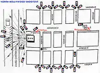 - http://www.northhollywoodshootout.com/timeline.html بایگانیشده در ۲۳ سپتامبر ۲۰۱۱ توسط Wayback Machine; note drop-down timeline list