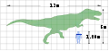 مقایسهٔ تیرانوسوروس و انسان در ابعاد یک متر در یک