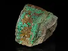 | توضیح بیشتر | محلول در اسیدها، دراثر حرارت رنگ آن میپرد و دراثرذوب بوئی مانند سیردارد. با آب مقطر شسته و تمیز میشود. CaO:۷٫۱۲٪ CuO:۳۶٫۳۲٪ As2O۵:۳۹٫۳۹٪ H2O:۱۷٫۱۷٪ |