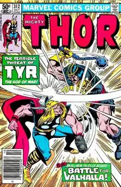![]() تیر در حال مبارزه با ثور. جلد ثور توانا جلد اول شماره ۳۱۲ام (ژوئیه ۱۹۸۱) | |