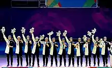 بازیکنان تیم ملی ایران بر سکوی قهرمانی بازیهای آسیایی ۲۰۱۸