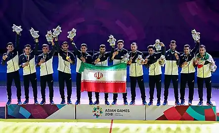 بازیکنان تیم ملی ایران بر سکوی قهرمانی بازیهای آسیایی ۲۰۱۸
