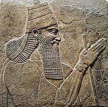 ![]() نقش برجسته از پادشاه تیگلتپیلسر سوم در دیواره کاخ خود (محل نگهداری: موزه بریتانیا) | |
