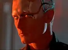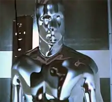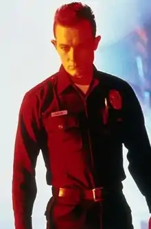 ![]() The "T-1000", played by Robert Patrick, partially revealing its liquid metal composition | |