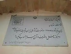 ![]() تابلوی میراث فرهنگی در بالای آب انبار ثانی آباد |