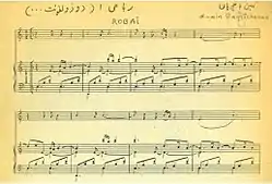 - «رباعی» روی سرودههای باباطاهر (برای آواز و پیانو)
