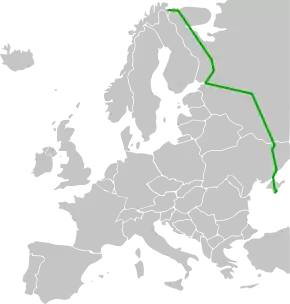 این جاده از شهر کیرکنز (نروژ) شروع شده و در شهر یالتا (اوکراین) به پایان میرسد.
