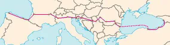 نقشه جاده ئی۷۰ اروپا