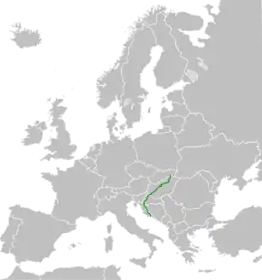 این جاده که از شهر کوشیتسه (اسلواکی) شروع شده، در شهر اسپلیت (کرواسی) به پایان میرسد.