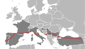 | کشورها: | پرتغال، اسپانیا، فرانسه، ایتالیا، کرواسی، مونتهنگرو، کوزوو، صربستان، بلغارستان، ترکیه |