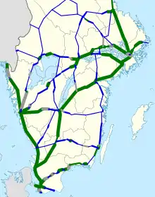مهمترین جادهها در سوئد با عنوان "جاده اصلی ملی" نامگذاری میشوند. در سال 1992 مجلس تصمیم گرفت که کدام جادههای این کشور جادههای اصلی باشند.