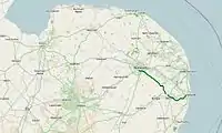 | پایان شرق: | نوریچ ۵۲٫۶۲۱۶°شمالی ۱٫۲۸۷۳°شرقی |