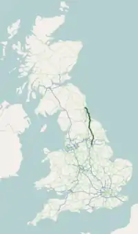 این جاده از سیتون بورن در شهرستان تاین و ور شروع و در شهر دونکستر در شهرستان یورکشایر جنوبی به پایان میرسد، طول این جاده ۱۹۹٫۶ کیلومتر است.