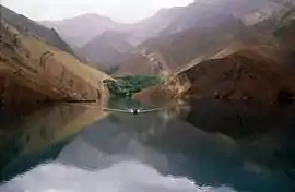 چشماندازی از از دریاچه سد امیرکبیر و دهکده واریان