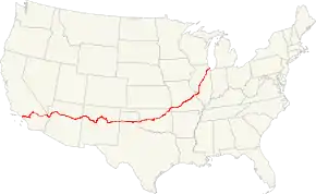| ایالتها: | کالیفرنیا، آریزونا، نیومکزیکو، تگزاس، اکلاهما، کانزاس، میزوری، ایلینوی |