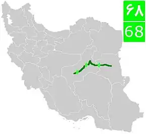 جادهٔ ۶۸ راهی در مرکز ایران است که یزد را به شهر بیرجند،سربیشه و پس از تقاطع با جاده مرزی ۹۹ ، به پایانه مرزی ماهیرود در مرز ایران و افغانستان متصل میکند و بخش زیادی از آن در نواحی خشک و بیابانی مرکز ایران قرار گرفته است. بخش زیادی از این جاده در حاشیهٔ جنوبی دشت کویر قرار گرفته است. این جاده از یزد تا طبس در جهت جنوب غربی ـ شمال شرقی امتداد یافته و پس از آن، از طبس تا بیرجند در امتداد شرقی ـ غربی ادامه مییابد و پس از آن با عبور از سربیشه به مرز ایران و افغانستان می رسد و پس از تقاطع با جاده ۹۹ به پایانه مرزی ماهیرود می رسد. این جاده که در یزد عمدتاً با نام جادهٔ طبس مشهور است، راه اصلی ارتباط میان استان یزد و خراسان جنوبی و خراسان رضوی محسوب میشود. جادهٔ ۶۸، در مسیر خود از شهرها و آبادیهای مهم و قابل توجهی در منطقهٔ کویر مرکزی ایران میگذرد که مهمترین آنها عبارتند از: خرانق، رباط پشت بادام، طبس و دیهوک.