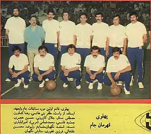 ترکیب تیم قهرمان پهلوی تهران عبارت است از: مظفر بنیهاشمی، رضا کشاورز، مصطفی نستار، جلال کازرونی، حسین هجری، جمشید قاسمی، امیر ایلیاوی، اسفند نگهبان، مشایخ رئوف، محسن خلخالی، فرزین غفوری و ستایش نگهبان. مربی: محمد خمامی.