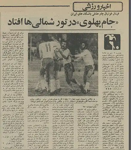 نگاهی میندازیم به گزارش روزنامه اطلاعات چاپ چهارم دی ۱۳۵۵ از بازی فینال جام حذفی بین دو تیم ملوان انزلی و تراکتورسازی تبریز