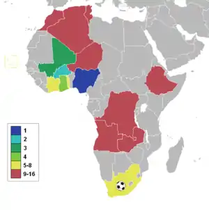 | Winner against Liberia | 13 October 2012 | ۱۶ (۱۹۶۳, ۱۹۷۶, ۱۹۷۸, ۱۹۸۰, ۱۹۸۲, ۱۹۸۴, ۱۹۸۸, ۱۹۹۰, ۱۹۹۲, ۱۹۹۴, ۲۰۰۰, ۲۰۰۲, ۲۰۰۴, ۲۰۰۶, ۲۰۰۸, ۲۰۱۰) | |