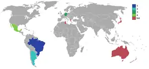 | تیم | کنفدراسیون | عنوان | تاریخ کسب مجوز | تعداد حضور |