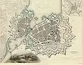 نقشهٔ ژنو و اطراف آن در ۱۸۴۱ میلادی. استحکامات غولآسا تعداد زیادی جانپناه را در خود جای دادهاند، این بنا ده سال بعد نابود شد.