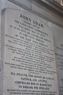 یادبود جان آدام در آرامگاه آدم، Greyfriars kirkyard