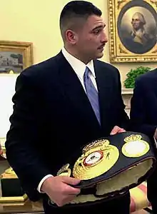![]() Ruiz with the WBA heavyweight title at the کاخ سفید، ۲۰۰۱ | |