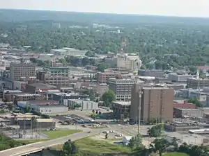 ![]() Aerial view of downtown Joplin, 2009. The bridge is 2nd Street and the intersection is 2nd St. and Virginia Ave. | |