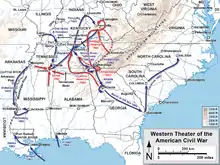 - مشارکتکنندگان ویکیپدیا. «Western Theater of the American Civil War». در دانشنامهٔ ویکیپدیای انگلیسی، بازبینیشده در ۲ ژوئن ۲۰۱۹.