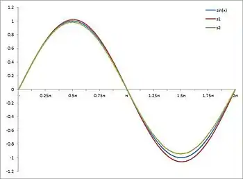 یک الگوریتم تقریبی برای ساختن جدولهای مثلثاتی توابع سسینوس و کسینوس، استفاده پیاپی از رابطههای زیر است: