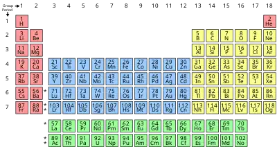 در جدول تناوبی استاندارد عنصرها به ترتیب عدد اتمی (شمار پروتونها در هسته)، به صورت صعودی مرتب شدهاند. هر ردیف تازه در جدول، که یک دوره یا تناوب نامیده میشود، با افزوده شدن نخستین الکترون به یک لایهٔ الکترونی تازه آغاز میشود. عنصرهایی که در یک ستون جدول (گروه) جای گرفتهاند، همگی در لایهٔ آخر الکترونی خود دارای تعداد الکترونهای برابر هستند؛ به عبارت دیگر آرایش الکترونی لایهٔ آخر آنها یکسان است. مانند اکسیژن و سلنیم که هر دو در یک ستون هستند و هر دو چهار الکترون در لایهٔ بیرونی آرایش الکترونی خود یعنی تراز p دارند. عنصرهایی که ویژگیهای شیمیایی مشابه دارند، معمولاً در یک گروه از جدول قرار میگیرند. اما در بلوک f عنصرهایی که در یک دوره هستند نیز ویژگیهای مشابهی را نشان میدهند. در نتیجه به آسانی میتوان ویژگیهای شیمیایی یک عنصر را با آگاهی از عنصرهای پیرامونیاش پیشبینی کرد.[3]